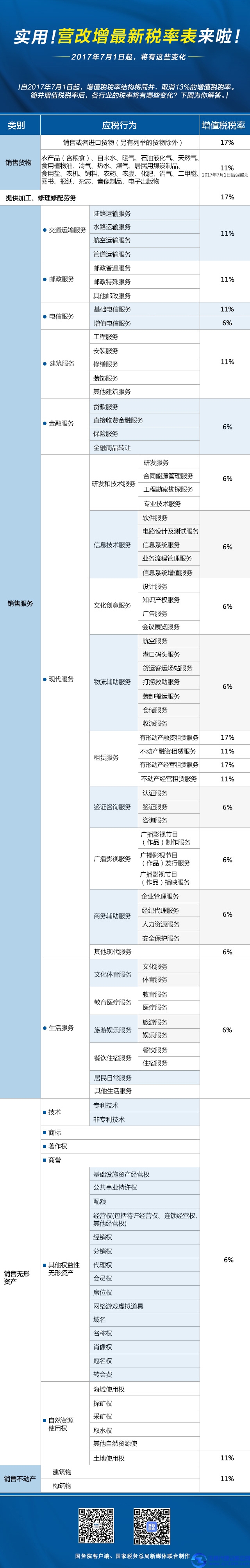 (原標(biāo)題: 廣州記賬報(bào)稅2017年國家營改增最新稅率表)